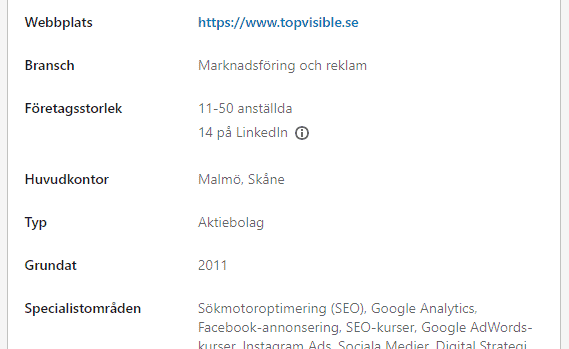 Se till att er sida är komplett och har alla uppgifter ifyllda. Enligt LinkedIn får kompletta företagssidor 30% mer visningar per vecka.